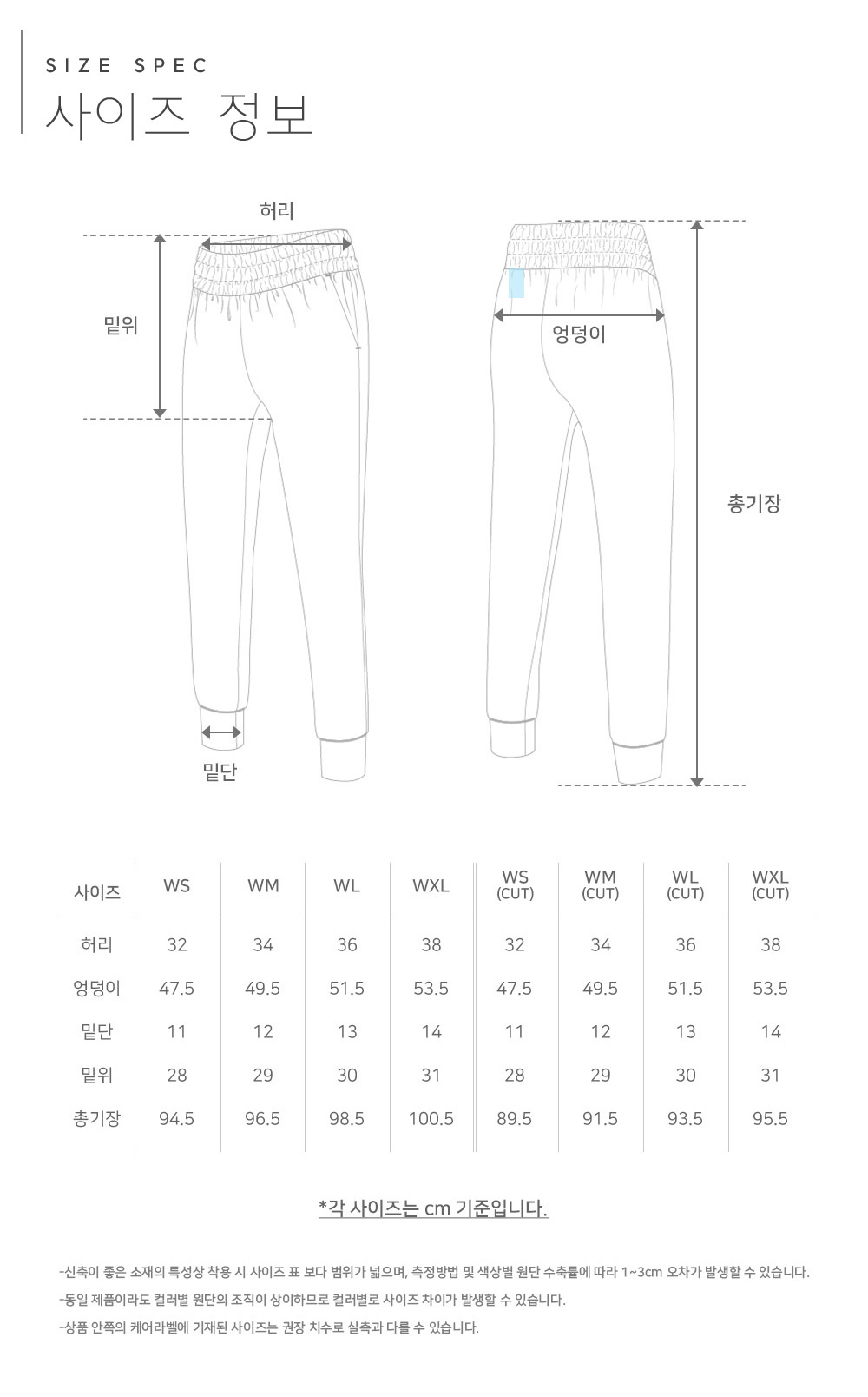 Item size chart 사이즈 기준표