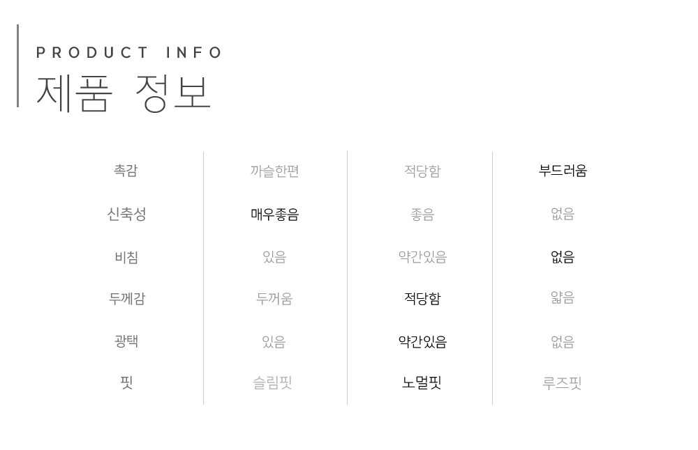 제품소재 폴리에스테르 85% 폴리우레탄 15%