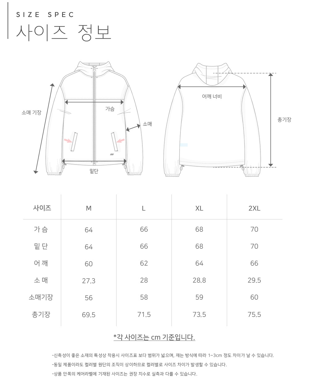 ※ 상품사이즈 치수는 재는 방법과 위치에 따라 1~3cm 오차가 있을 수 있습니다.