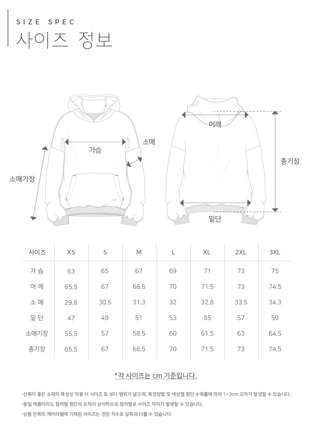 ※ 상품사이즈 치수는 재는 방법과 위치에 따라 1~3cm 오차가 있을 수 있습니다.