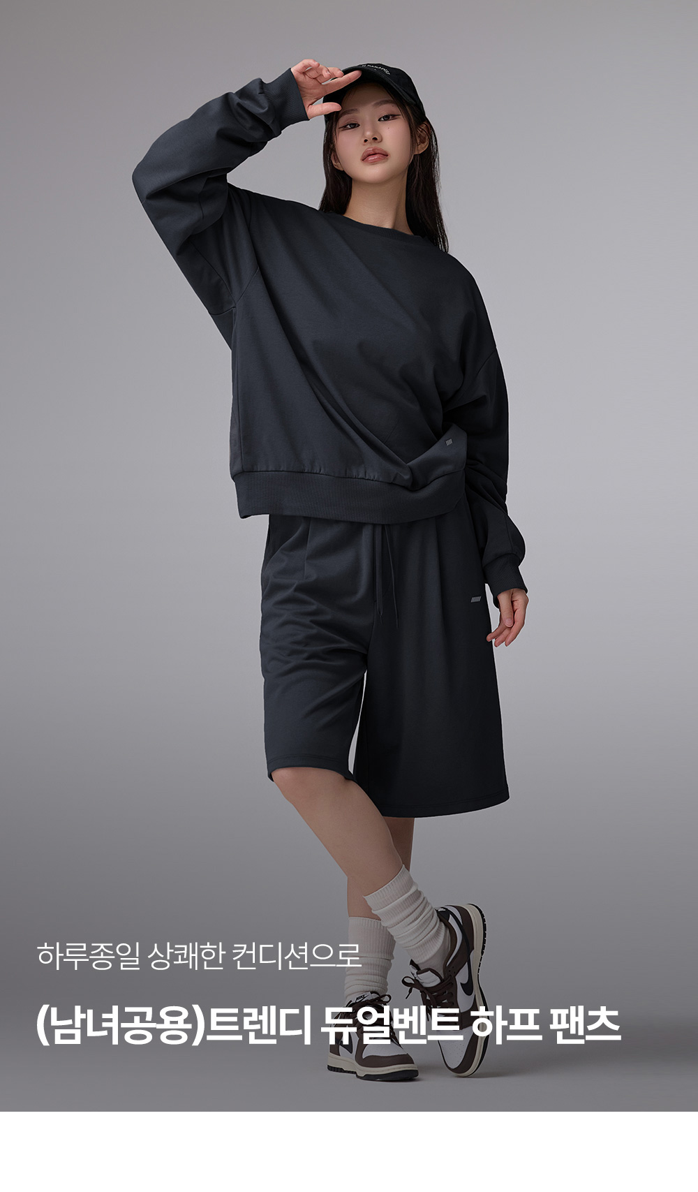 간절기부터 여름까지 하루종일 상쾌한 컨디션으로 입는 남녀공용 트렌디 듀얼벤트 하프 팬츠는