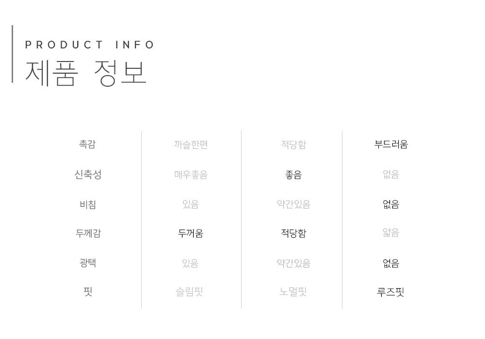 Item size chart 사이즈 기준표