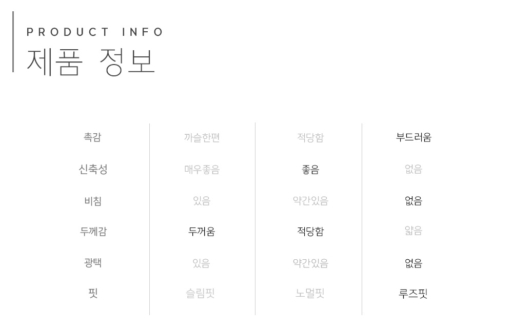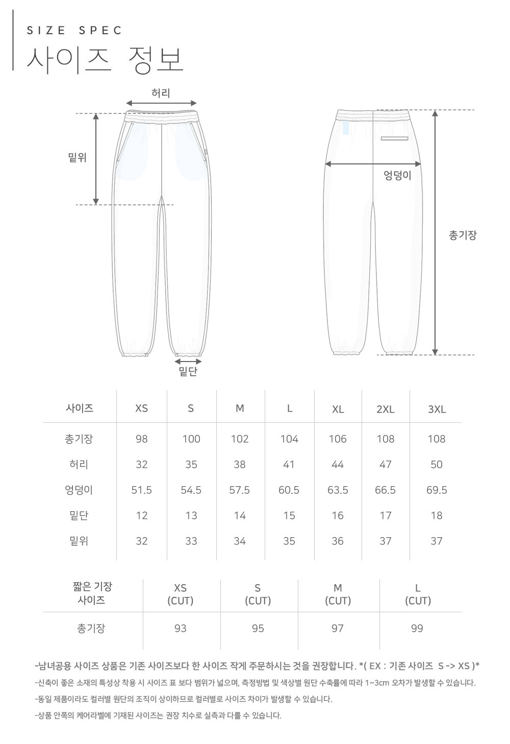 Item size chart 사이즈 기준표