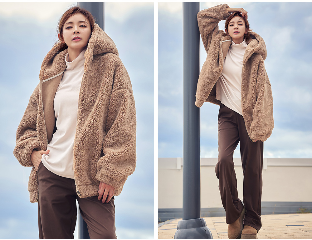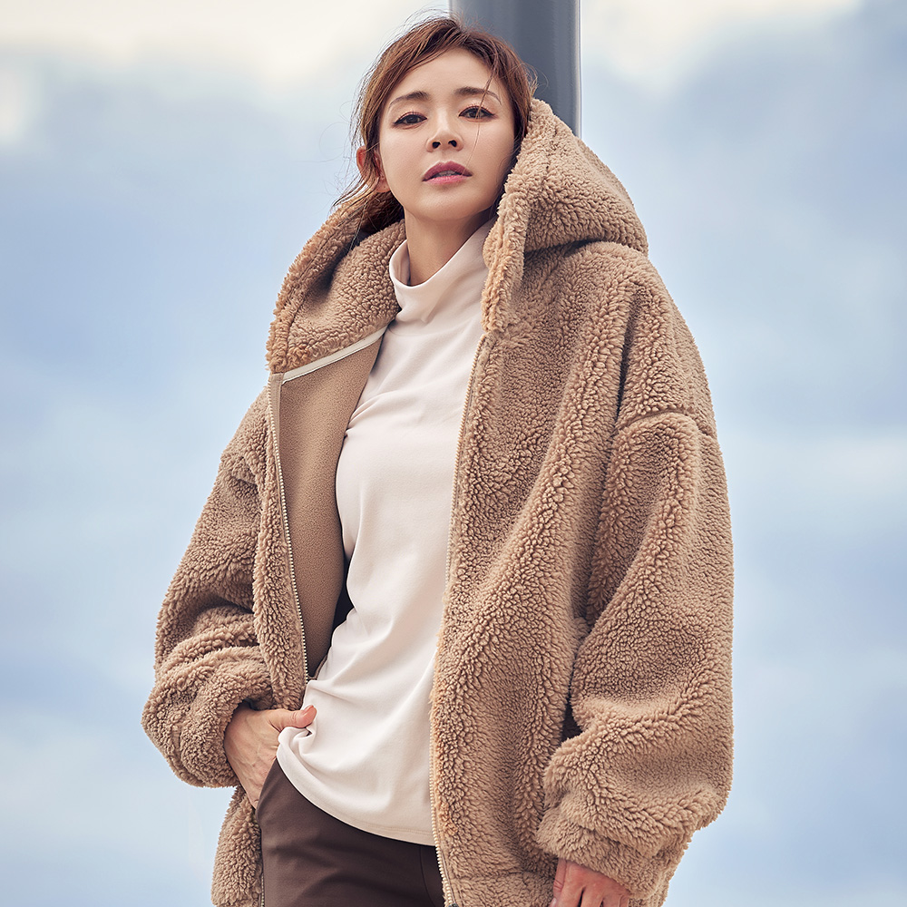 STL 쉐르파 코지 오버핏 후드 집업