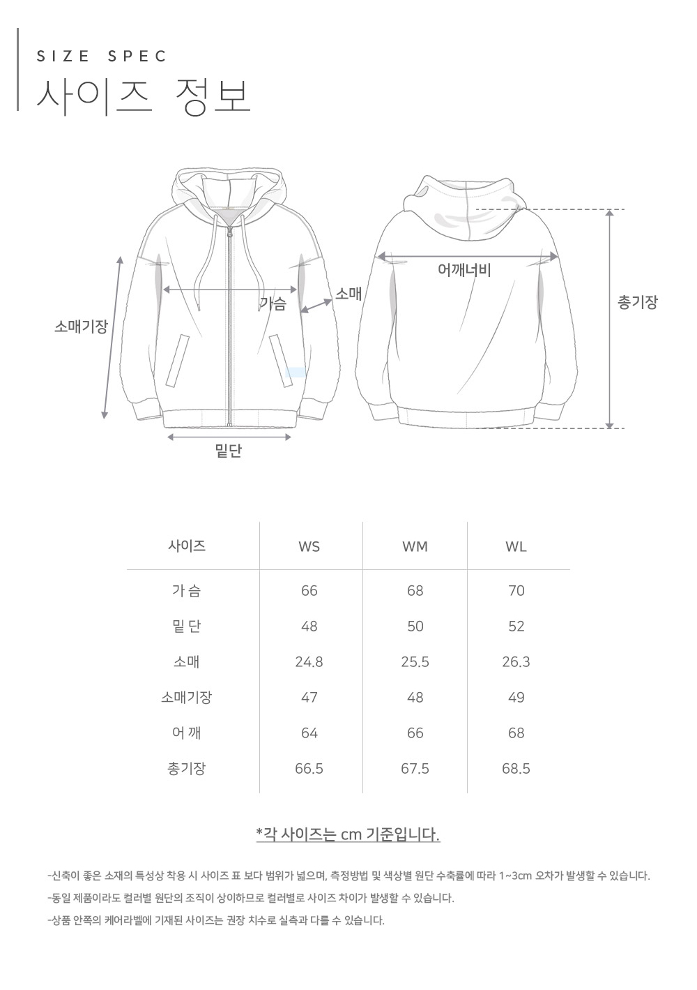 ※ 상품사이즈 치수는 재는 방법과 위치에 따라 1~3cm 오차가 있을 수 있습니다.