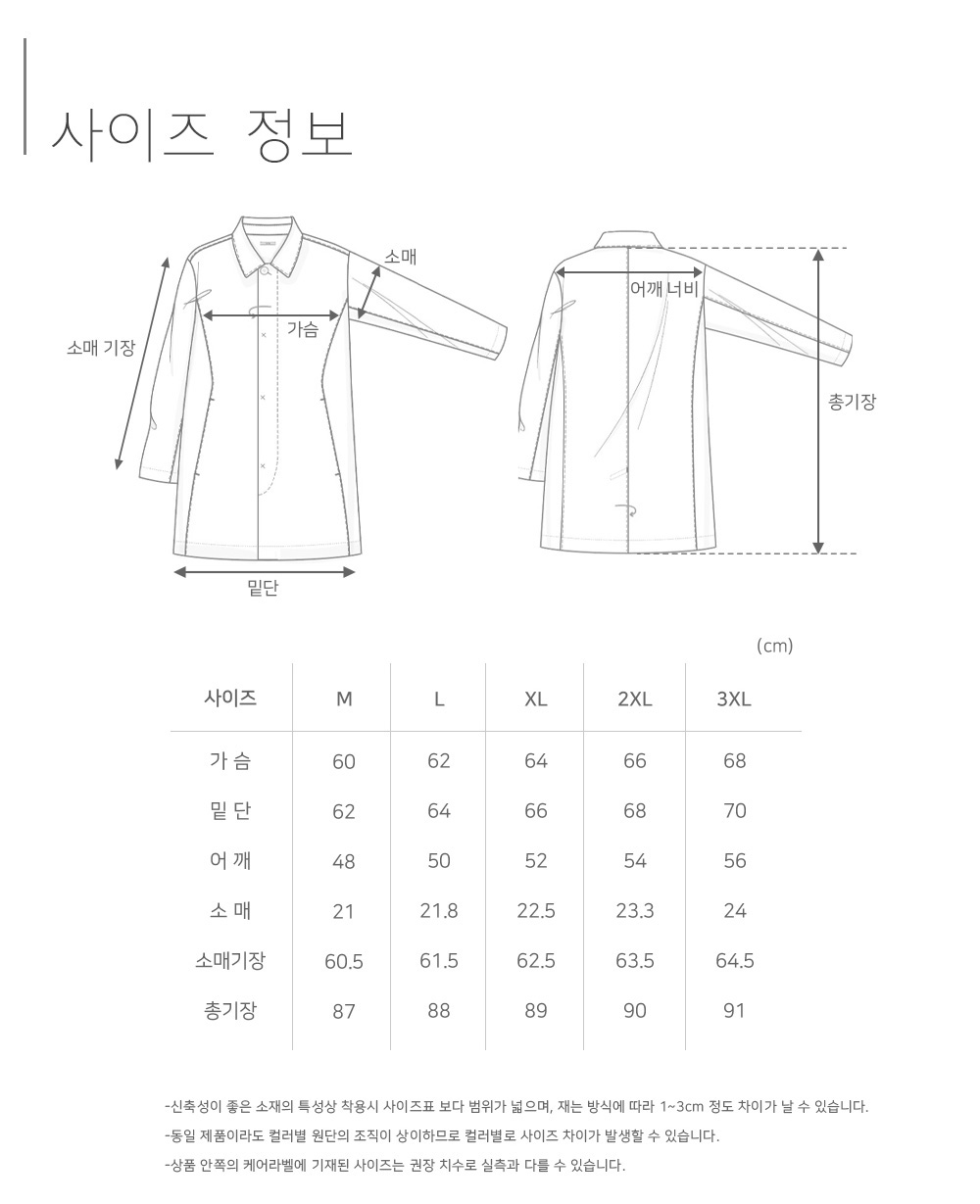 ※ 상품사이즈 치수는 재는 방법과 위치에 따라 1~3cm 오차가 있을 수 있습니다.