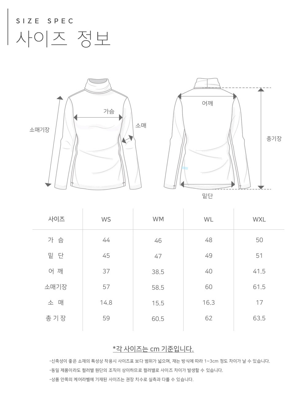 Item size chart 사이즈 기준표
