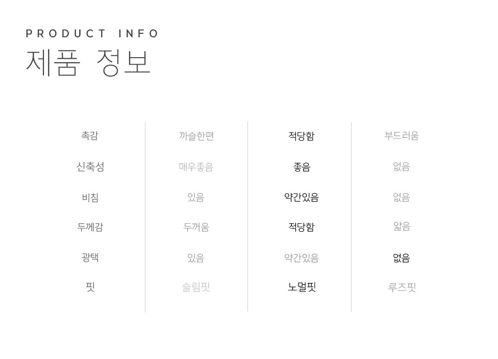 | 제품소재 | 폴리에스테르 92%, 폴리우레탄 8% |