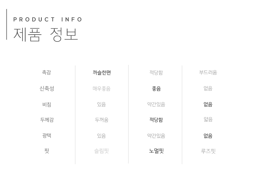 | 제품소재 | 폴리에스테르 94%, 폴리우레탄 6% |