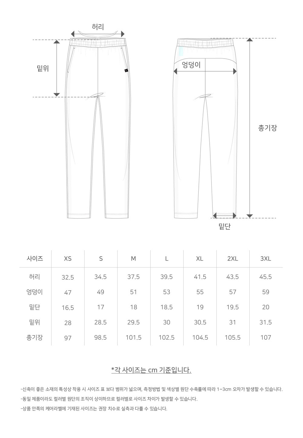 ※ 상품사이즈 치수는 재는 방법과 위치에 따라 1~3cm 오차가 있을 수 있습니다.
