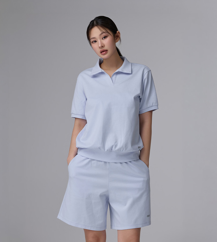 [SET]픽업 포르테 오픈 카라 숏슬리브 & 픽업 포르테 밴딩 하프 팬츠