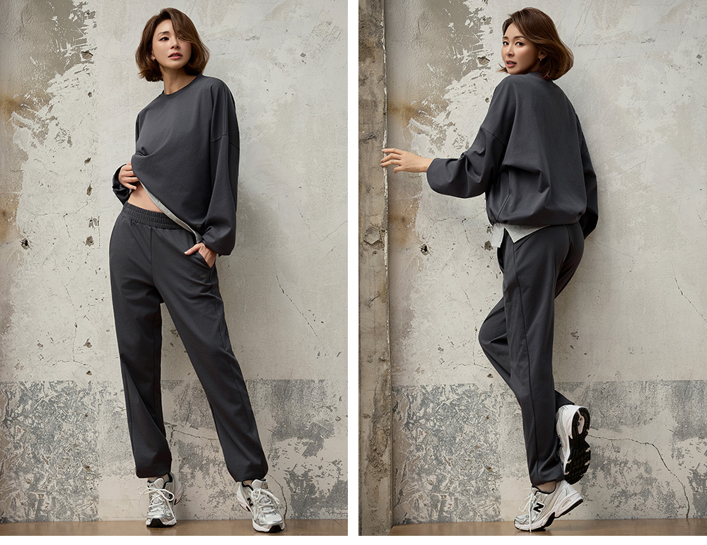 사이드 더블 패널과 절개 패턴으로 다리가 길고 슬림해 보이며, 힙과 허리를 안정적으로 잡아주는 데일리 조거 팬츠예요.