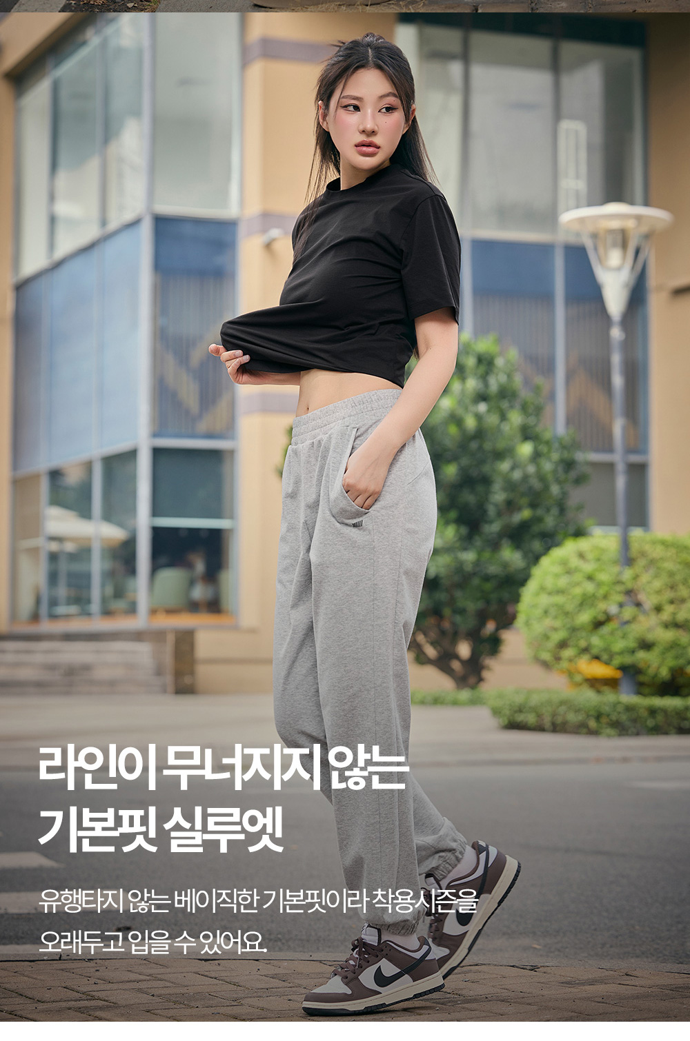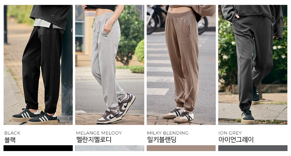 착용감은 어떤가요슬림하지도 와이드하지도 않은 중간 핏으로 부담 없이 착용할 수 있고, 조거 특유의 편안함은 살리면서 답답함은 줄였어요. 소재와 기능성5cm 폭의 탄탄한 허리 밴딩이 말림과 뒤틀림 없이 허리를 고르게 감싸주고, 사이드 포켓으로 실용성을 높였어요. 자주 묻는 질문