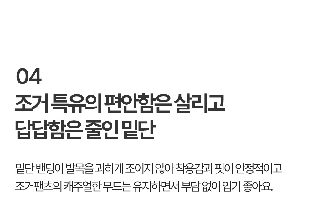 Q. 조거 팬츠 밑단이 답답하지는 않나요? 조거 팬츠, 절개 조거 팬츠, 데일리 팬츠, 허리 밴딩, 미들 핏, 여성 조거 팬츠 |