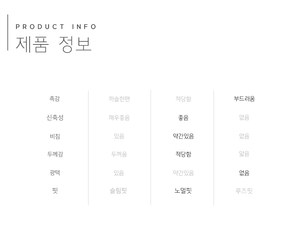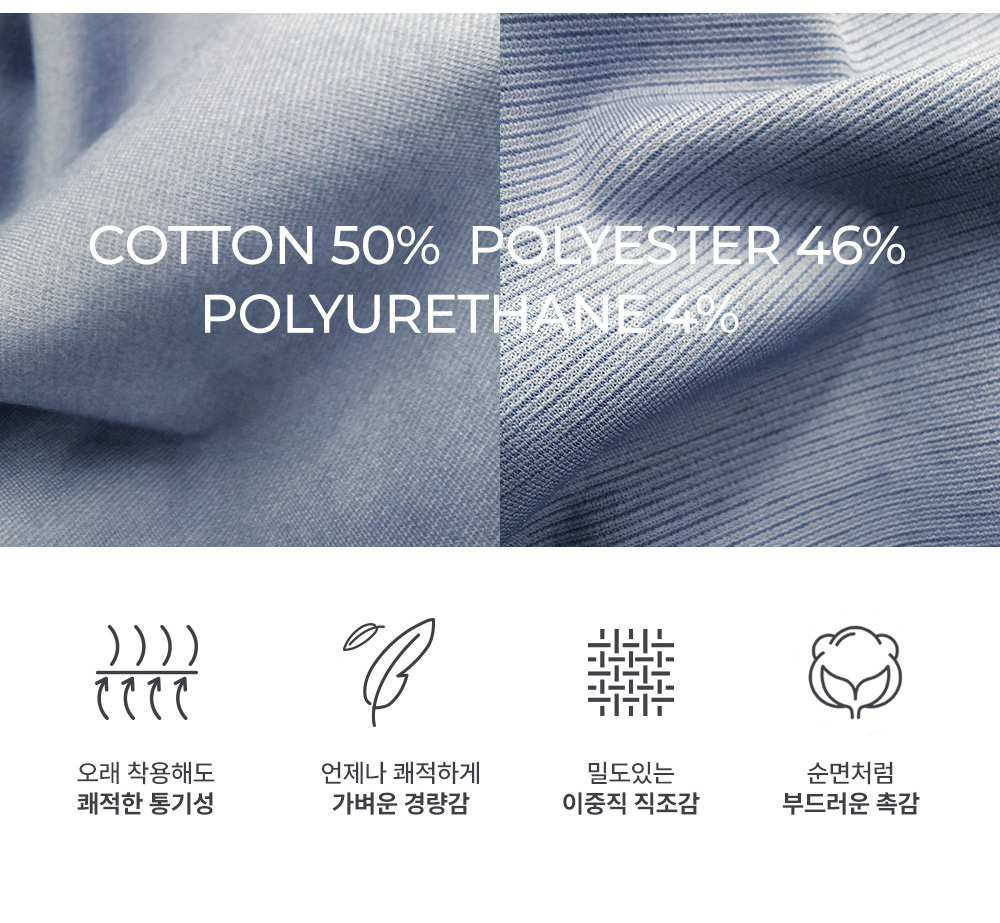 | 제품소재 | 면 50%, 폴레에스테르 46%, 폴리우레탄 4% |