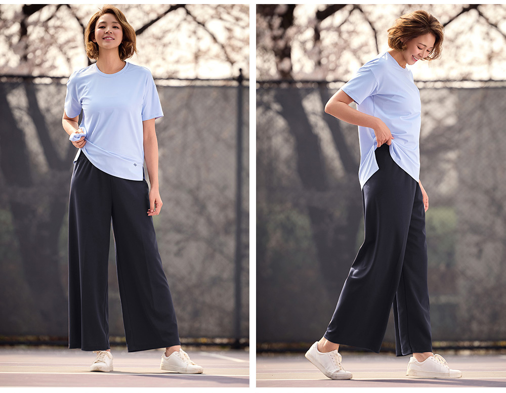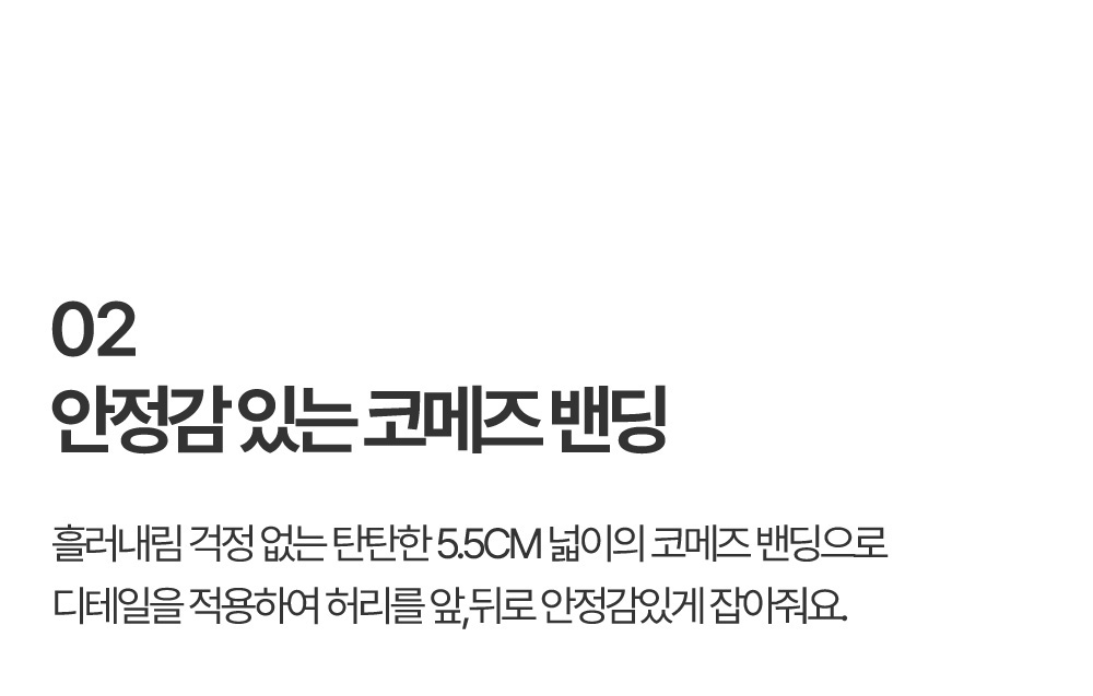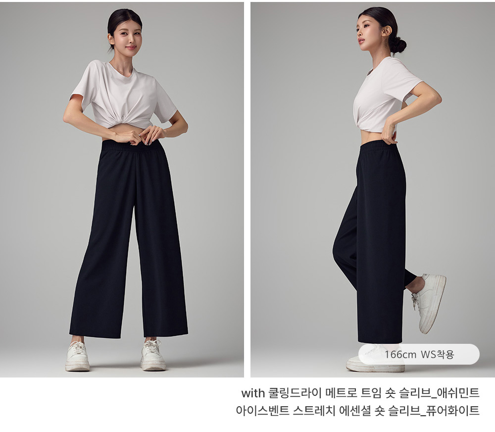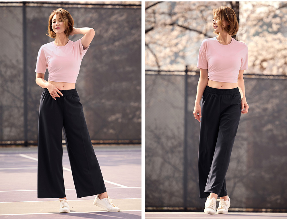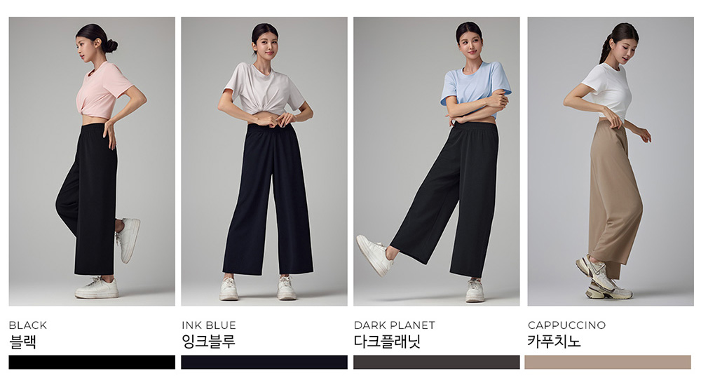 착용감은 어떤가요플레어핏 디자인으로 다리 라인이 자연스럽게 떨어지며 활동 시 편안합니다. 코메즈 밴딩 허리로 장시간 착용해도 부담이 적고, 키가 작은 분들도 균형 있게 입기 좋은 실루엣입니다. 소재와 기능성퀵드라이 기능성 소재로 땀이나 수분이 빠르게 건조되어 쾌적한 착용감을 유지합니다. 가벼운 중량감으로 활동성이 좋으며 내구성이 뛰어나고 구김이 적어 관리가 쉬운 소재입니다. 자주 묻는 질문