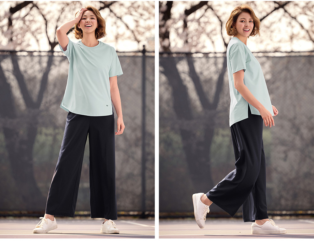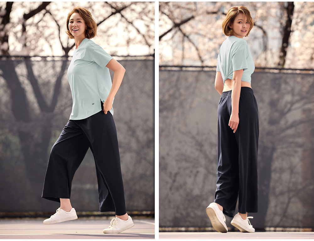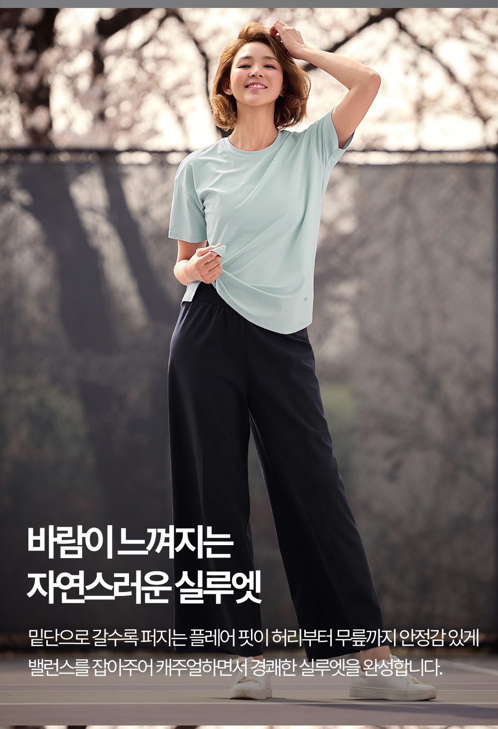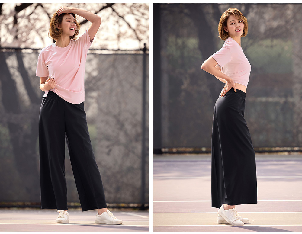 착용감은 어떤가요플레어핏 디자인으로 다리 라인이 자연스럽게 떨어지며 활동 시 편안합니다. 코메즈 밴딩 허리로 장시간 착용해도 부담이 적고, 키가 작은 분들도 균형 있게 입기 좋은 실루엣입니다. 소재와 기능성퀵드라이 기능성 소재로 땀이나 수분이 빠르게 건조되어 쾌적한 착용감을 유지합니다. 가벼운 중량감으로 활동성이 좋으며 내구성이 뛰어나고 구김이 적어 관리가 쉬운 소재입니다. 자주 묻는 질문
