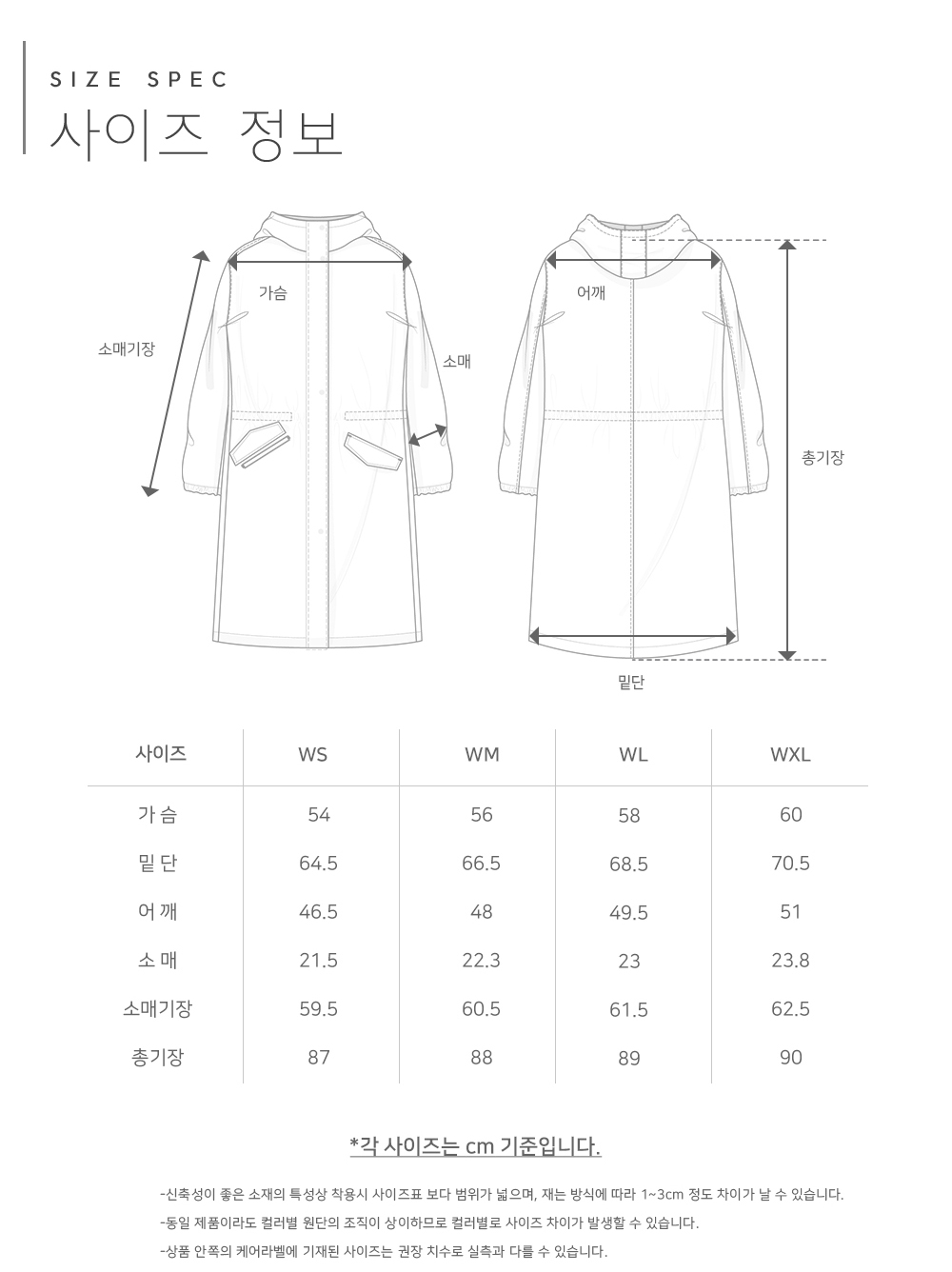 ※ 상품사이즈 치수는 재는 방법과 위치에 따라 1~3cm 오차가 있을 수 있습니다.