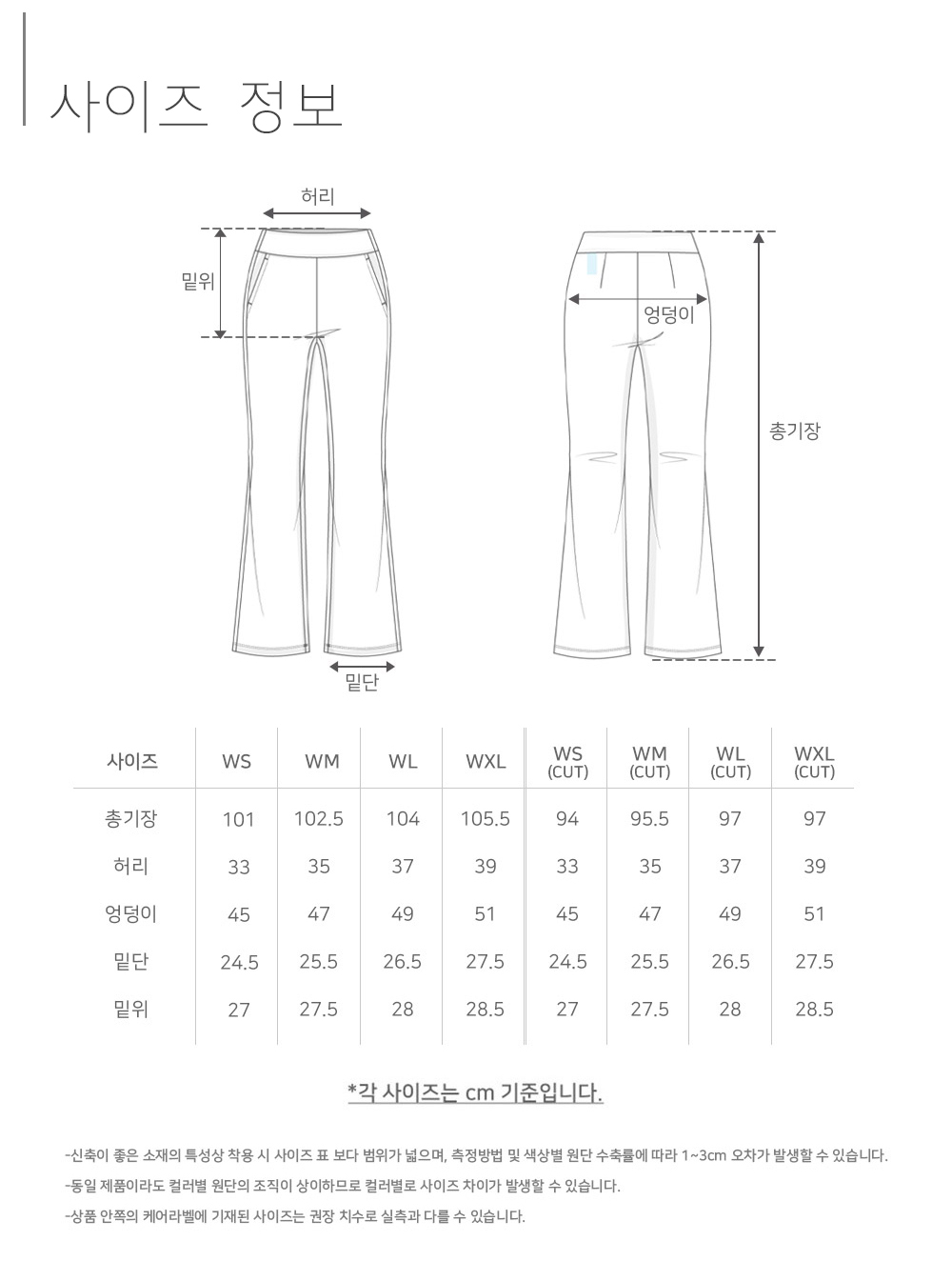 ※ 상품사이즈 치수는 재는 방법과 위치에 따라 1~3cm 오차가 있을 수 있습니다.